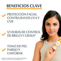 * Recomendaciones: Es el protector solar ideal para el uso diario en pieles mixtas a grasas que buscan controlar el brillo facial durante todo el día.