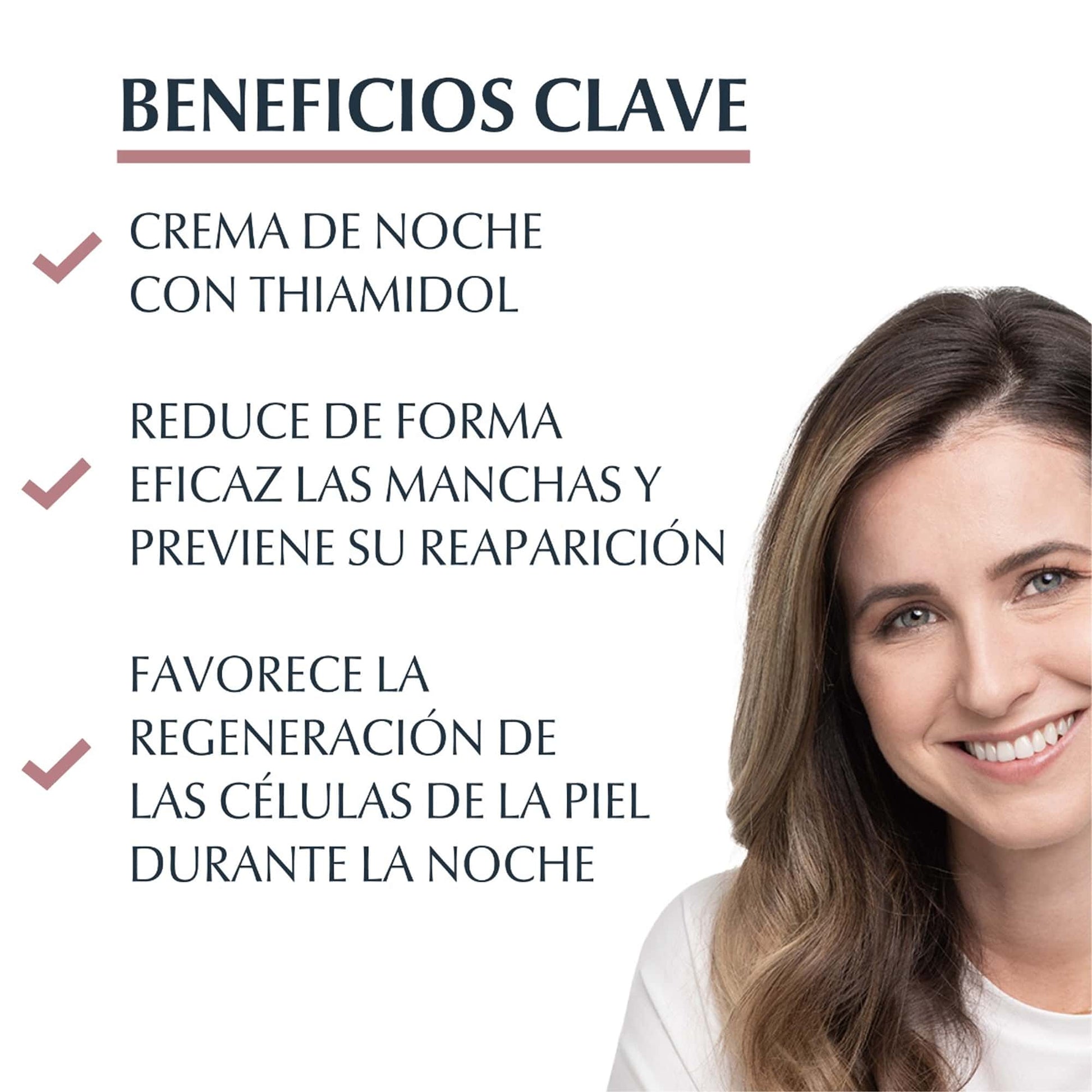 2) Aplicar Eucerin ANTI-PIGMENT Crema de noche sobre el rostro, cuello y escote, masajeando suavemente.