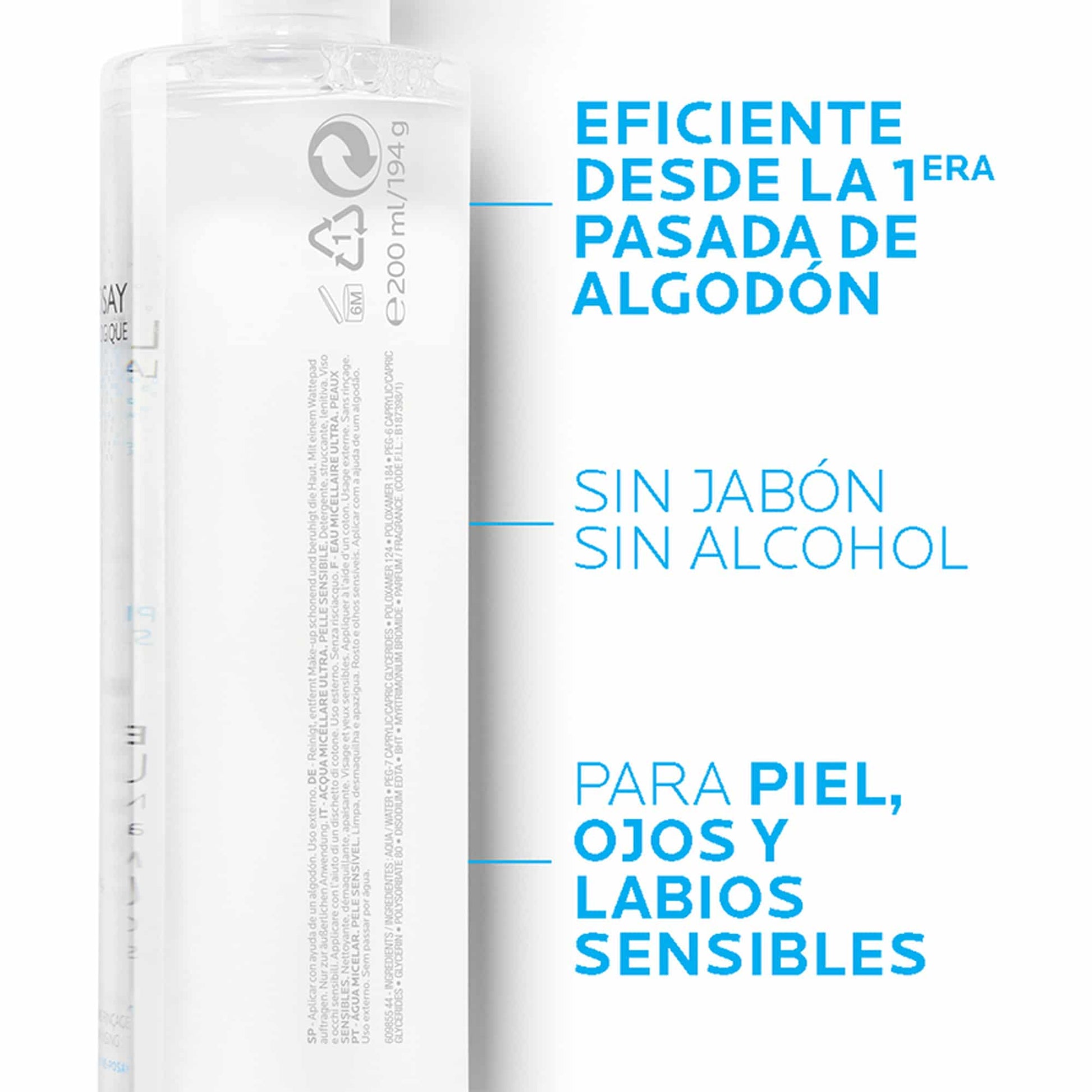 Fórmula sin perfume, hipoalergénica, sin alcohol y testada dermatológica y oftalmológicamente, segura para ojos sensibles y uso diario.